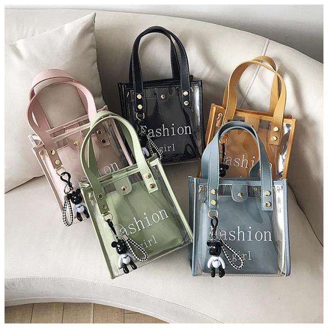 クリアバッグ レディース ハンドバッグ ショルダー トートバッグ 斜め掛け チェーン付き リボン可愛い エコバッグ