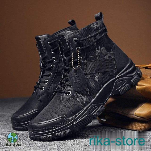 メンズ シューズ メンズファッション 男女兼用ハイカット ブーツ 紳士靴 迷彩 復古 厚底 英国風 アウトドア カジュアルシューズ