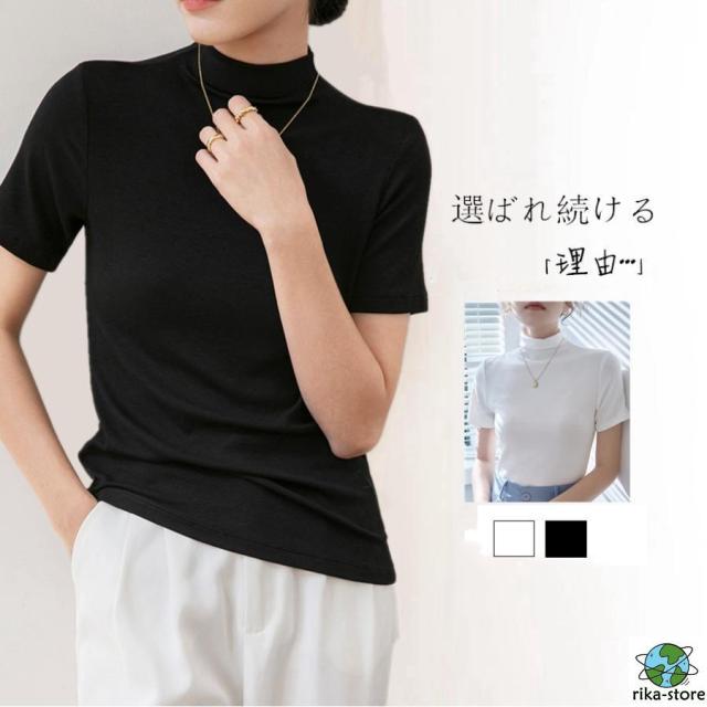 Tシャツ レディース トップス ハイネック タートルネック 夏 無地 半袖Tシャツ インナー シンプル カジュアル