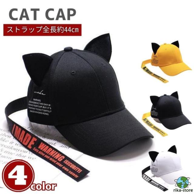 キャップ 猫耳 ロングストラップ 男女兼用 帽子 全4カラー 韓国ファッション メンズ レディース 流行 モデル セレブ B系 ダンス シンプル ガーリー ボーイ