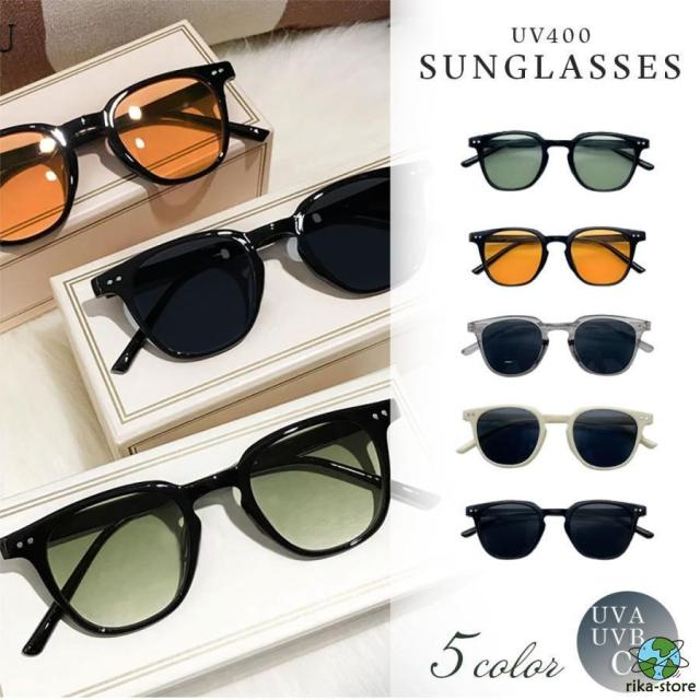 サングラス UV400 スクエア 5色カラー UVカット メガネ ブルーライトカット 紫外線サングラス 韓国ファッション レディース メンズ 男女兼用 ブラックフレーム