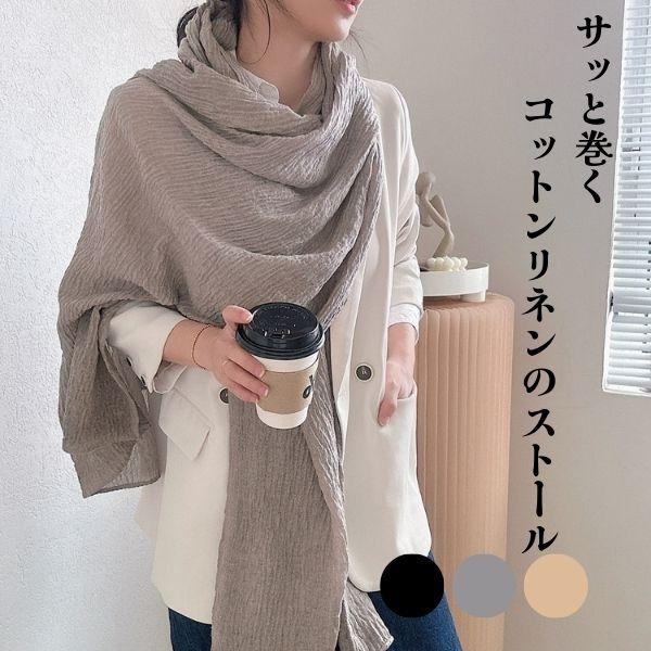ストール 大判 春 薄手 コットンリネン 綿 麻 レディース