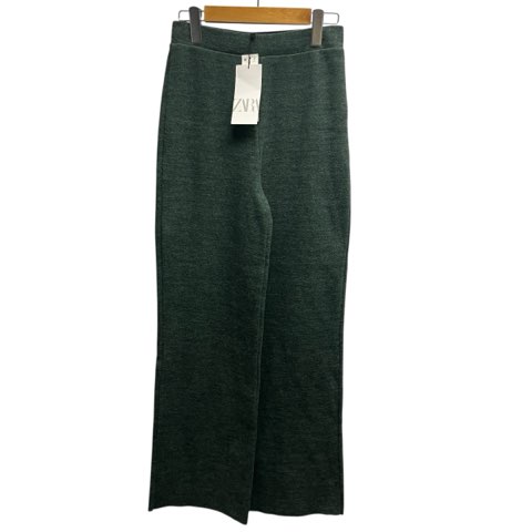 【中古】ザラ ZARA 未使用タグ付き イージーワイドパンツ ストレート EU Sサイズ グリーン レディース