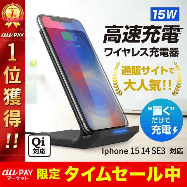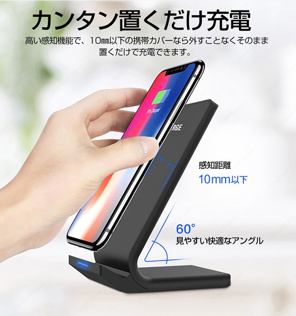 ワイヤレス充電器 iPhone16 15 14 13 12 11 SE2 X XR XS 8 スマホ アンドロイド 無線充電器 android ワイヤレス 充電器 Qi スタンド式 置くだけ充電 送料無料