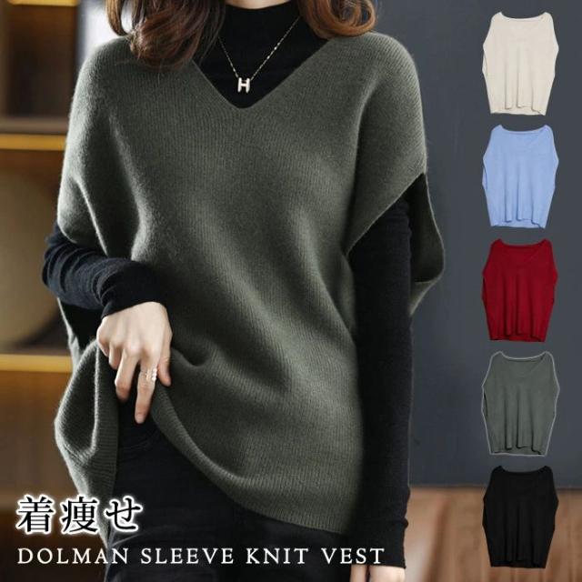 ニット ベスト レディース ニットベスト セーター トップス Vネック 春 夏 春夏 黒 ドルマンスリーブ ニット トップス ドルマン ベスト ゆったり 体型カバー 無地 セーター ブラック カジュアル ニットソー 20代 30代 40代 ママ 母 OL