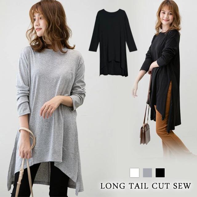 カットソー レディース ロング丈 トップス 春 夏 春夏 黒 白 グレー 丸首 チュニック ワンピース チュニックワンピース ミニワンピ チュニックワンピ 長袖 シャツ ビッグサイズ ブラック ホワイト 体型カバー 20代 30代 40代 ママ 母