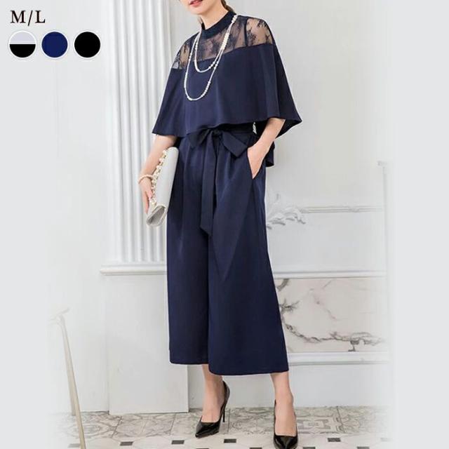 パーティードレス レディース パンツドレス 黒 紺 結婚式 パンツスタイル セットアップ セット レース 大人 ドレス ブラック ネイビー グレー Pants dress party スーツ 結婚式ドレス フォーマル パーティー M L お呼ばれ 20代 30代 40代 OL ママ 母