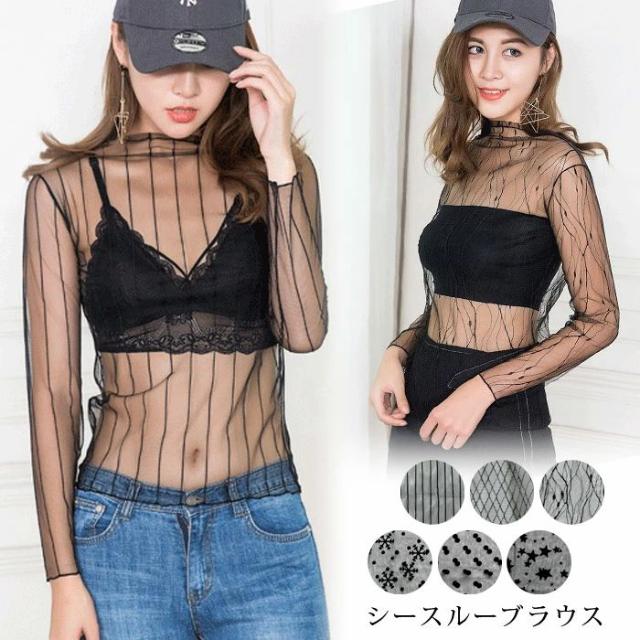 ブラウス レディース 春 夏 春夏 長袖 黒 シースルー セクシー チュニック トップス 透け 重ね着 シースルートップス レイヤード ブラック 星柄 リーフ柄 ストライプ ひし形柄 ドット柄 スノー柄 大人 通勤 20代 30代 40代 OL ママ 母