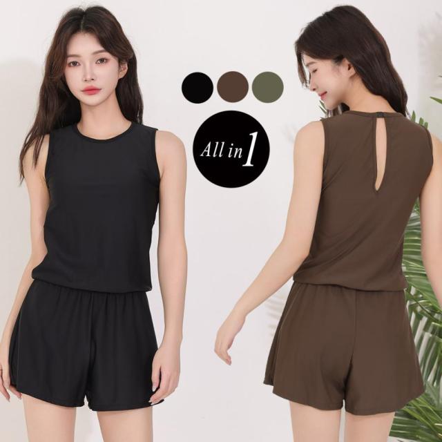 シンプルデザインで誰でも着こなしやすいオールインワン水着。