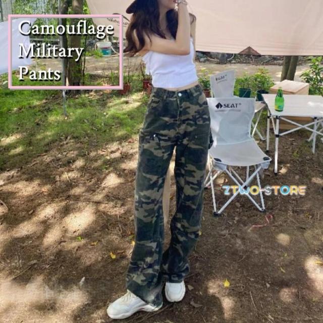 カーゴパンツ カモフラージュ柄 おしゃれ ストリート ロングパンツ レディース ストレートパンツ 迷彩パンツ ダンスパンツ ワイドパンツ ゆったり ダ