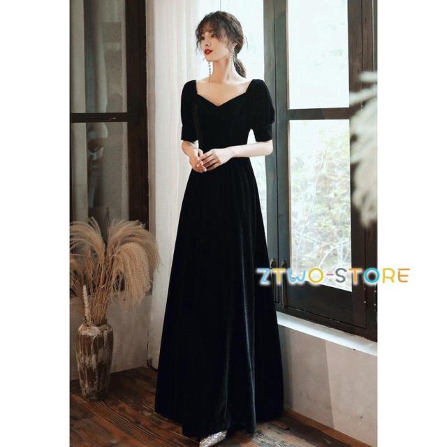 パーティードレス ロング ロングドレス 結婚式 服装 ドレス お呼ばれドレス 女性 20代 30代 40代 黒 演奏会 袖あり 半袖 ワンピースドレス 演奏会用ロングドレス 小さいサイズ 大きいサイズ 3L 上品 シンプル ハイウエスト ブラック