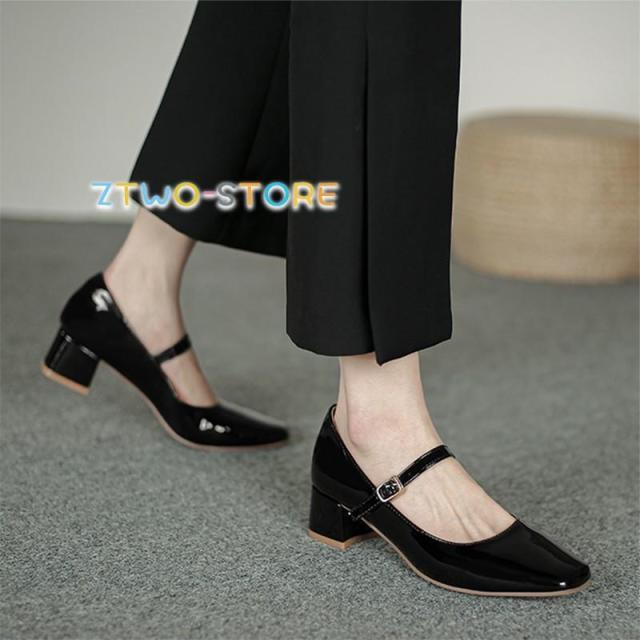 シンプルだけどトレンドがちりばめられた、スクエアトゥストラップパンプス。