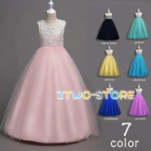 子供ドレス 女の子 ワンピース ピアノの発表会/結婚式のおよばれ/七五三の記念撮影 キッズ フォーマルドレス ロングドレス レース チュールスカート7color