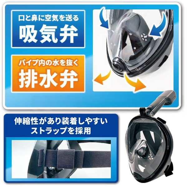 | 180度ワイドな視界で海を楽しもう。 鼻と口で自然な呼吸が可能です。 |
