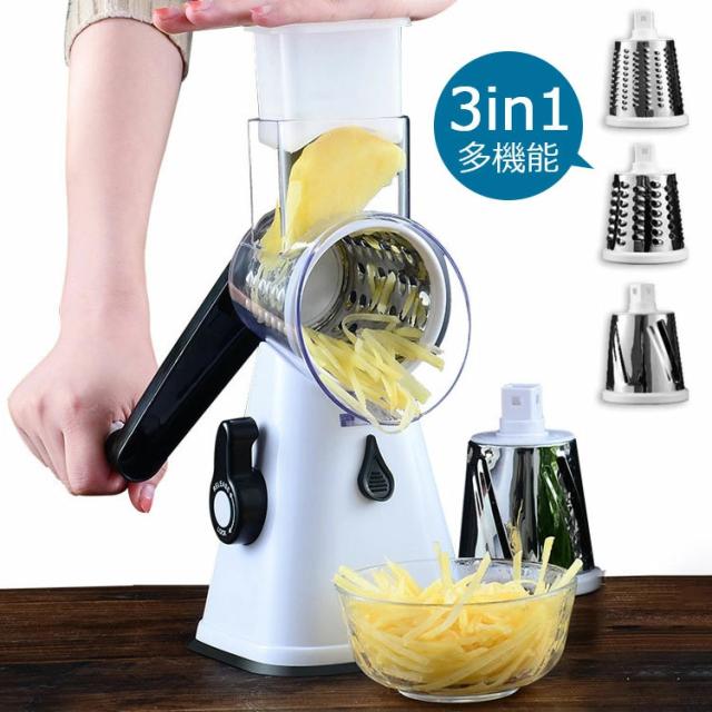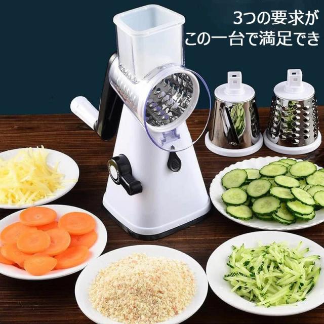 スライサー 野菜カッター みじん切り おろし器 多機能 3in1 キュウリ ポテト ニンジン チーズ 野菜サラダ ピーラー 千切り 人気 スライサー スパイラルカッター ベジヌードルカッター 手動回転式 キッチンスライサー 3つのモード 洗える 人参 大根 千切り器