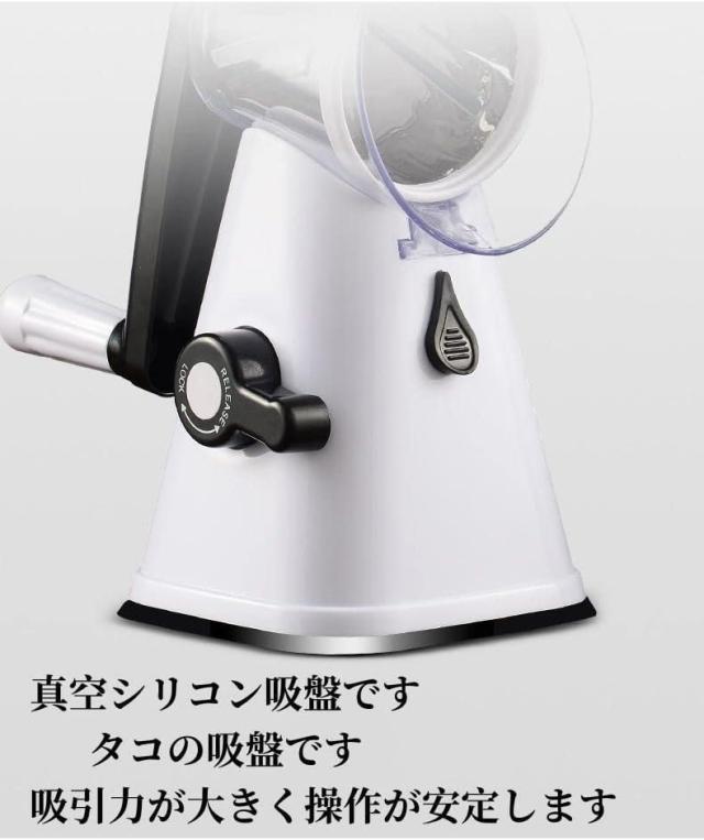 【素材】 ABSプラスチックの強力なベース+ 304ステンレス鋼の吸引カップは、清潔感があり、切れ味が良く、使用中のシュレッダーを安定させ、人間工学的に家庭用に設計されています。刃を変えて押すだけで、さまざまな野菜や果物を切ることができます。親密なハンドル、簡単に、簡単にストレージ用の小型サイズを取ります。