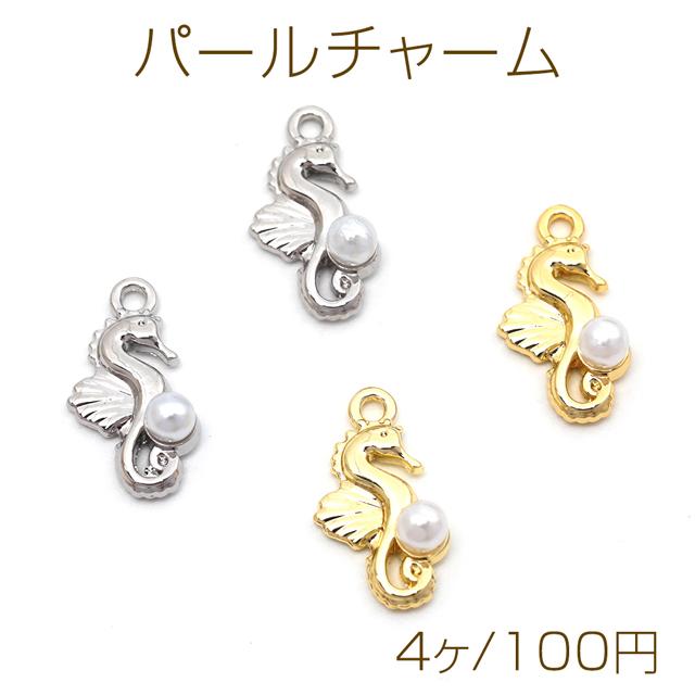 パールチャーム 合金製 タツノオトシゴ ABSパール付き 半面 マリンチャーム メタルチャーム 約8×16mm(4ヶ)