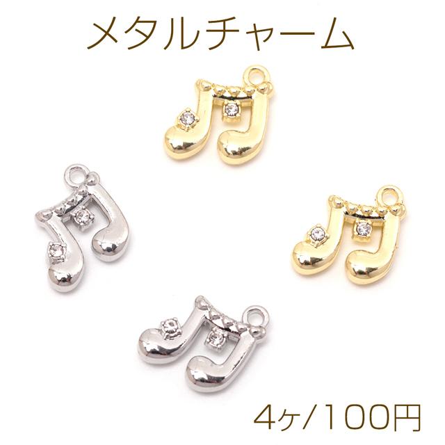 メタルチャーム 合金製 音符 リズム 音楽 楽譜 ガラスストーン付き メタルチャーム 約12×12mm(4ヶ)