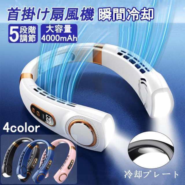 2025最新型 ネッククーラー 充電式 冷却プレート アイスリング 扇風機 首掛け 4000mAh クールリング 羽なし ネックファン ポータブル 静音 熱中症対