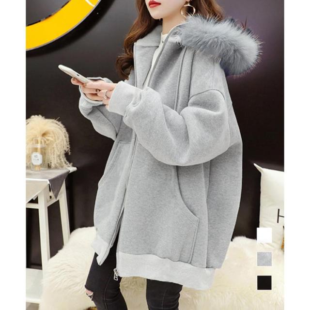 ふわふわのファーフード付きで、大人カジュアルにぴったりの裏微起毛ジップアップパーカー