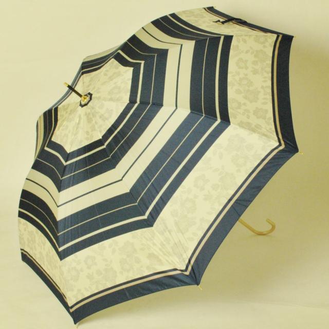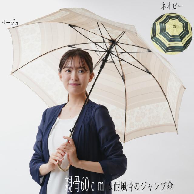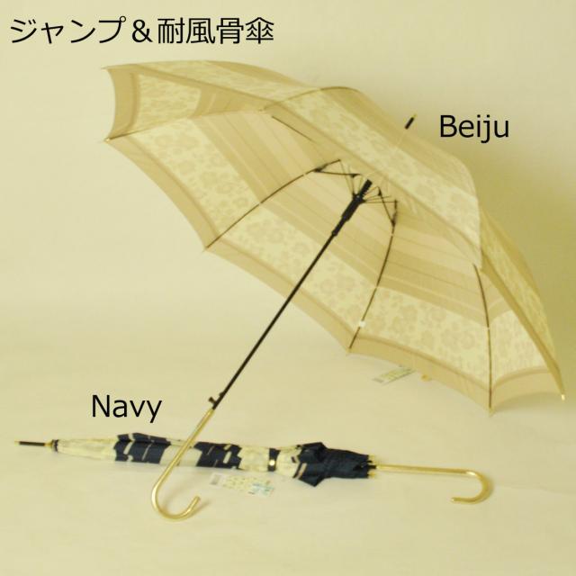 | 傘骨8本の耐風骨【フラワーボーダー柄】 ジャンプ洋傘 2色 ベージュor ネイビー |