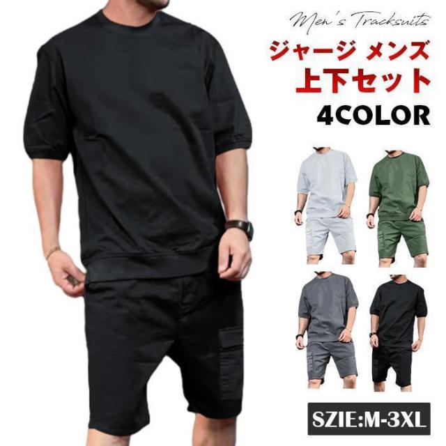 ジャージ メンズ 作業着 上下セット セットアップ メンズ カットソー 半袖Tシャツ カーゴパンツ ゴルフウェア 30代 40代 50代 父の日 プレゼント 夏 無地