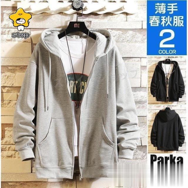 パーカー メンズ ジップアップパーカー ゆったり スウェット ジップパーカー 無地 長袖 秋服 春服 薄手 トップス