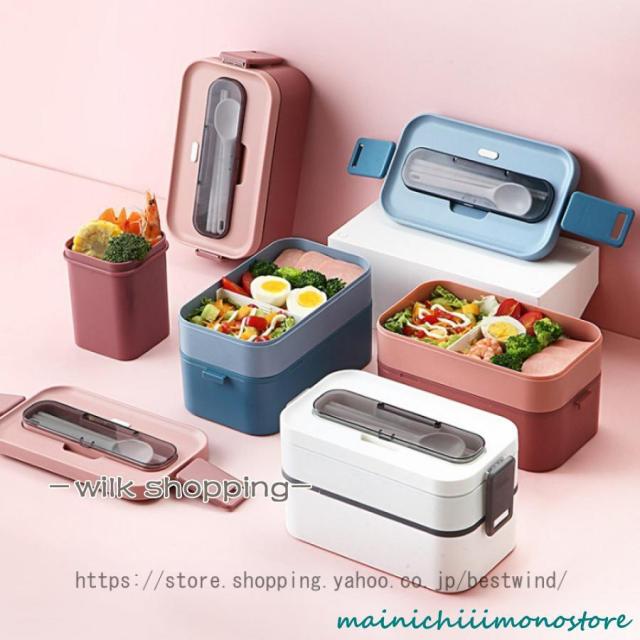 2個の小さいボックスで、栄養バランスが取れて匂いを混ぜません。おしゃれで持ち運びしやすい大容量ランチボックスです。