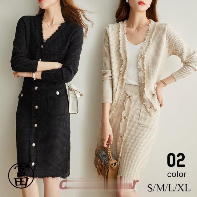 ニットセットアップ レディース 40代 秋冬 長袖 ニット トップス vネック タイトスカート セットアップ おしゃれ スーツ 30代 通勤 入学式 卒業式