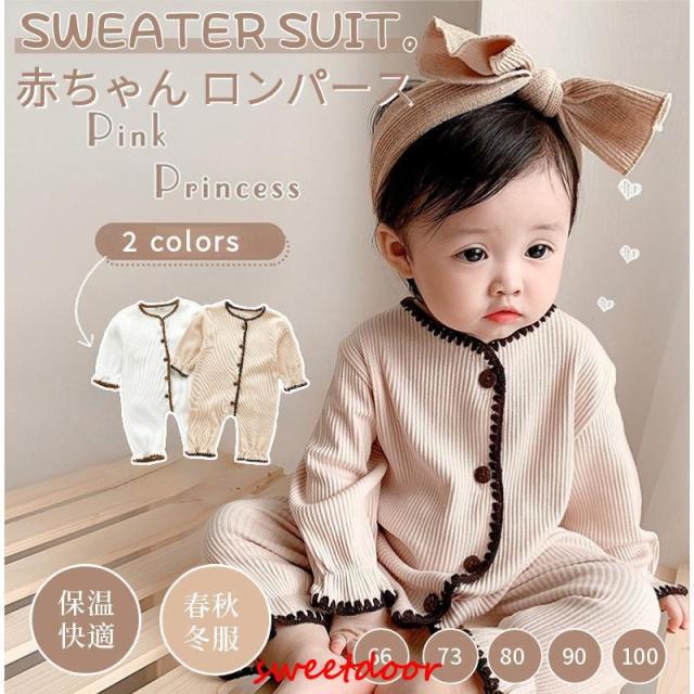 無地のベビー服 ニットロンパース シンプル ベビー服 ロンパース カバーオール ニット 長袖 前開き 春 秋 冬 コットン 女の子 男の子 0-24ヶ月