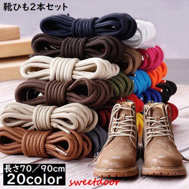 靴紐 70と90cm 靴ひも シューレース 丸紐 2本セット 男女兼用 丸型 丸形 スニーカー ブーツ 運動靴 シューズ くつ