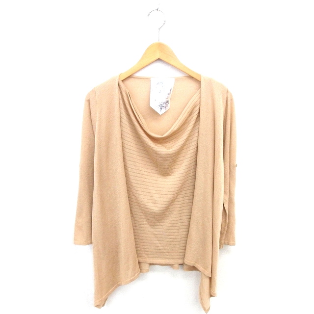 【中古】ルスリー L'SULLY サマーニット ドレーブ ボーダー ラメ 透け感 薄手 長袖 38 ベージュ 茶 /TT レディース