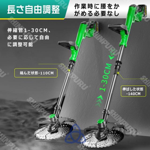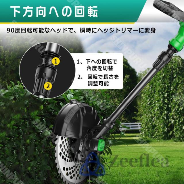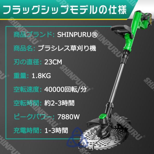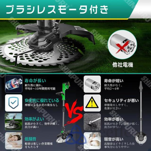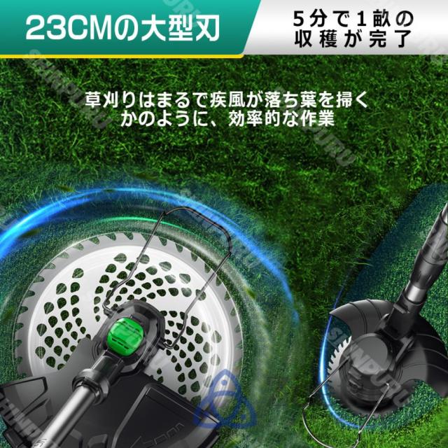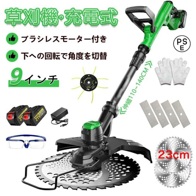草刈機 充電式 草刈り機 コードレス 9インチ刈払機 ブラシレスモーター 芝刈り機 電動芝刈機 ナイロンカッター 軽量 伸縮可 角度調整可 替え刃7枚付き 枝切り