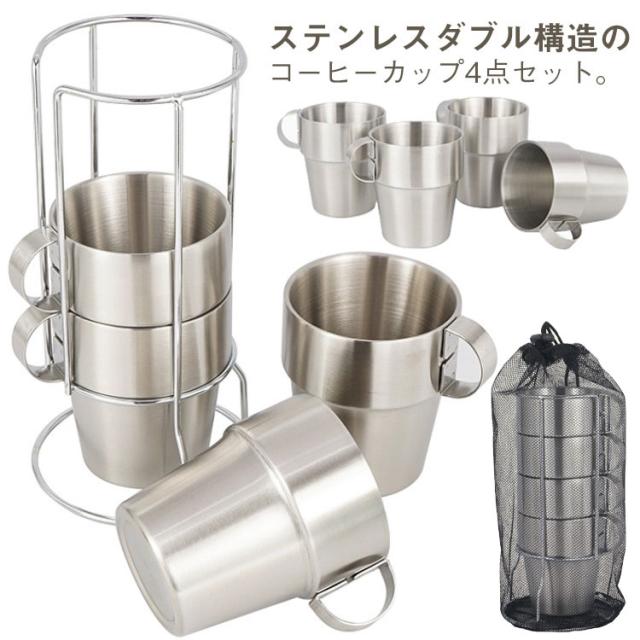 コーヒーカップ 4個セット 収納袋付き ステンレス コップ マグカップ コーヒー 紅茶 コーヒーカップセット 断熱 保温 保冷 プレゼント ギフト アウトドア キャンプ 送料無料