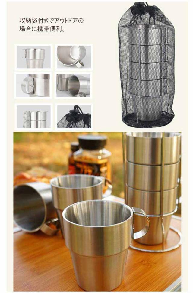 | ステンレスダブル構造のコーヒーカップ4点セット。 2重構造で保存・保温性が高い。 カップを積み重ねても倒れにくく見た目もスマートです。 収納袋付きでアウトドアの場合に携帯便利。 | |