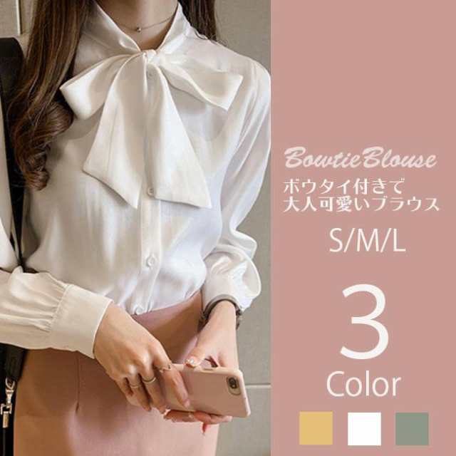 ブラウス ボウタイ レディース 長袖 シャツ トップス リボンシャツ ワイシャツ カジュアル 女性 通勤 春秋 大人 可愛い おしゃれ