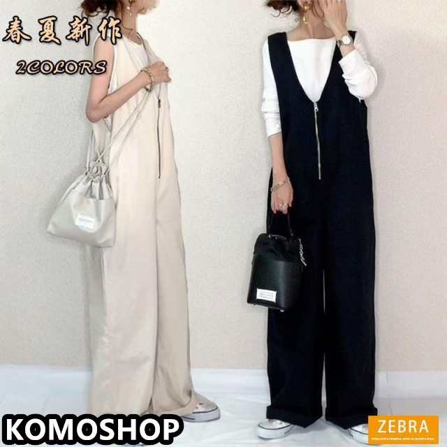 サマーサロペットパンツ レディース 春夏 サロペット ガウチョパンツ ワイドパンツ黒 ゆったり 着痩せ 通勤 カジュアル 20 30 40 代