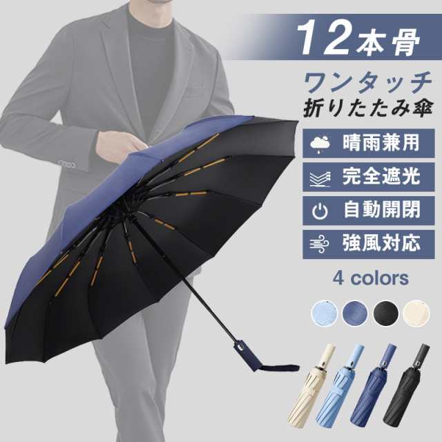 雨傘 折りたたみ傘 メンズ 自動開閉 ワンタッチ 12本骨 傘 日傘 雨傘 耐風 晴雨兼用 折り畳み傘 UVカット 撥水 大きい 持ちやすい 男女兼用