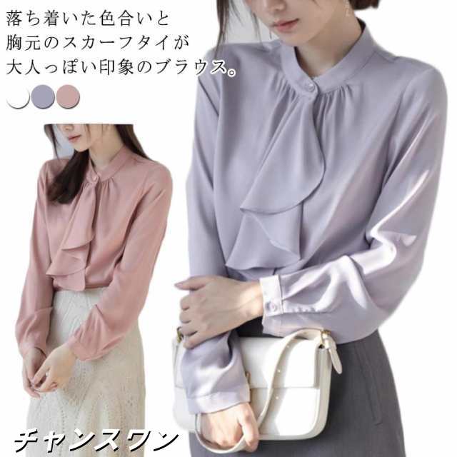 スカーフタイ シャツ ボウタイ オフィス ブラウス ビジネススーツ ママスーツ インナー ボウタイブラウス レディース フォーマルブラウス ボウタイブラウス プチハイネック 長袖 大人可愛い セレモニー フォーマル 卒園式 入園式 入学式 卒業 結婚式