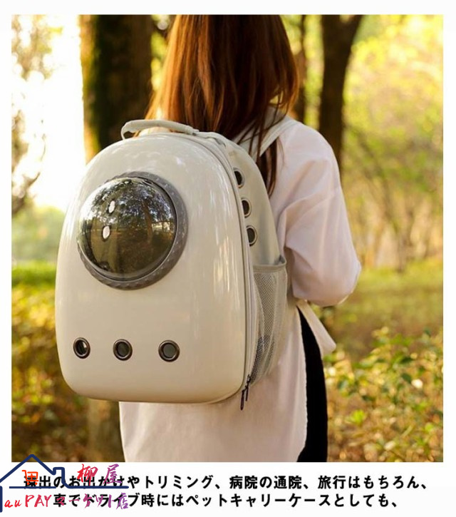 | シンプルでおしゃれなペットキャリーリュック 外の景色が見えるため、ペットへのストレスも軽減 正面の透明なドーム窓から宇宙船に乗っているみたいにバックを開けずにいつでもペットの顔が見れるので 遠出のお出かけやトリミング、病院の通院、旅行はもちろん、車でドライブ時にはペットキャリーケースとしても、 避難時のペット用の防災グッズ?災害グッズとしてもおすすめなペットバッグ。 | |