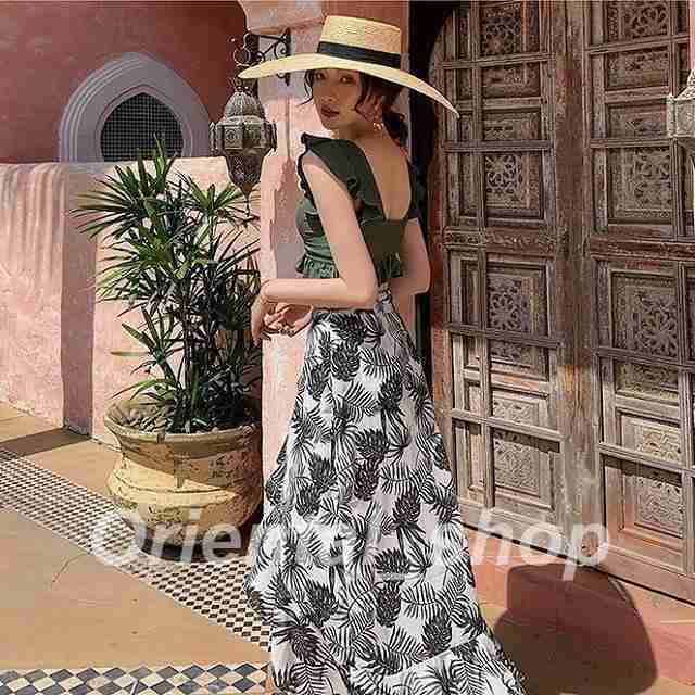 水着レディースビキニ巻きスカート付き短パン肩フリル体型カバーママ水着リゾート海外旅行ハワイグアム沖縄10代20代30代40代50代