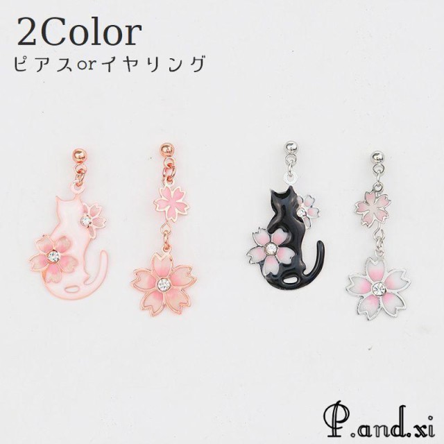 ピアス イヤリング スタッドピアス クリップ アクセサリー 耳飾り レディース 猫 桜 アシンメトリー 記念日 誕生日 プレゼント ギフト 可愛い お