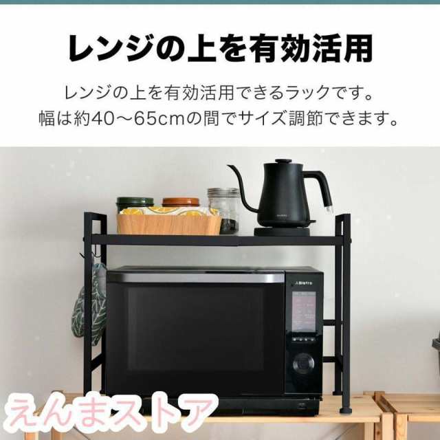 レンジ上ラック キッチン収納 伸縮 幅40-64cm レンジ台 キッチンラック 大型レンジ対応 電子レンジ棚 トースター 省スペース おしゃれ