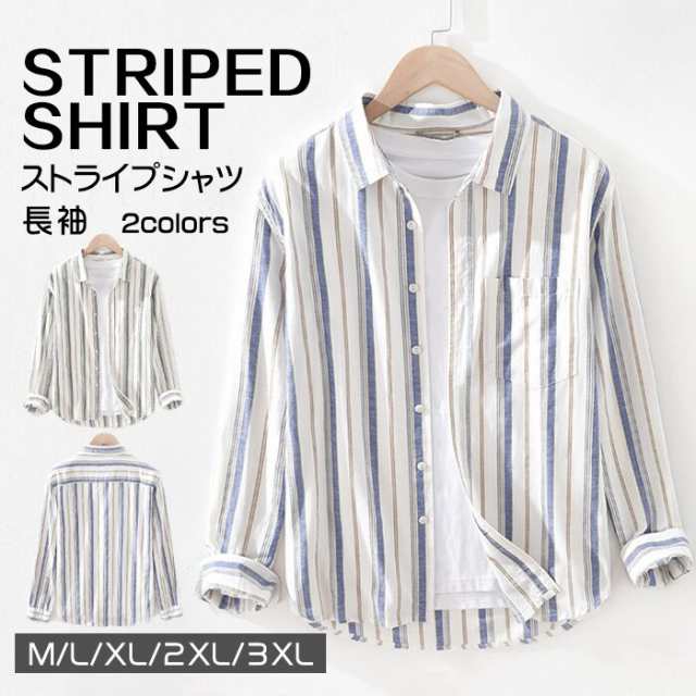 ストライプシャツ メンズ 大きいサイズ 春 ストライプシャツ ブルー tシャツ 長袖シャツ メンズ おしゃれ ストライプ 春夏 カジュアルシャツ メンズ ワイシャツ 綿シャツ 長袖 薄手 開襟シャツ スリム 通学 通勤 薄手 体型カバー