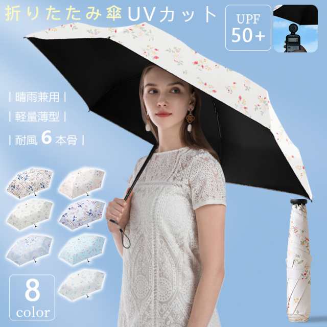折りたたみ傘 紫外線対策 可愛い 日傘 雨傘 軽量薄型 UVカット スムーズ開閉 遮光遮熱 晴雨兼用 UPF50+ 耐風6本骨 UV CUT はっ水加工 130g軽量 耐水性 日焼け防止 夏の日 収納しやすい
