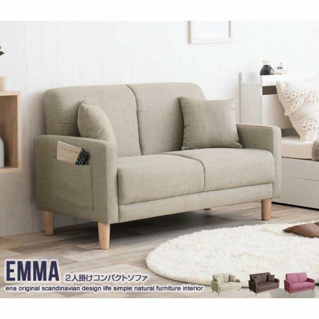 送料無料 2人掛けコンパクトソファ ダイニングソファ 二人掛けソファ 2P リビングソファ 北欧 シンプル iina emma おしゃれ 収納家具