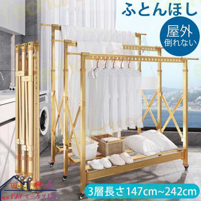【ふとんほし 屋外 倒れない アルミ 伸縮式 折りたたみ 高さ調整 おしゃれ 物干し台 室内物干し 風に強い 錆びない 物干し竿 布団干し 物干しラック 洗