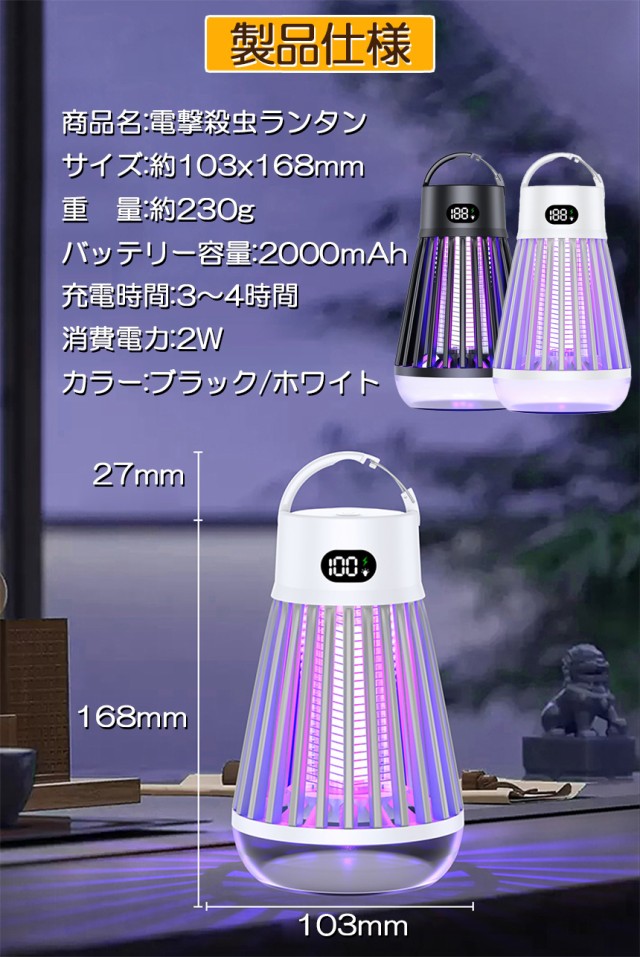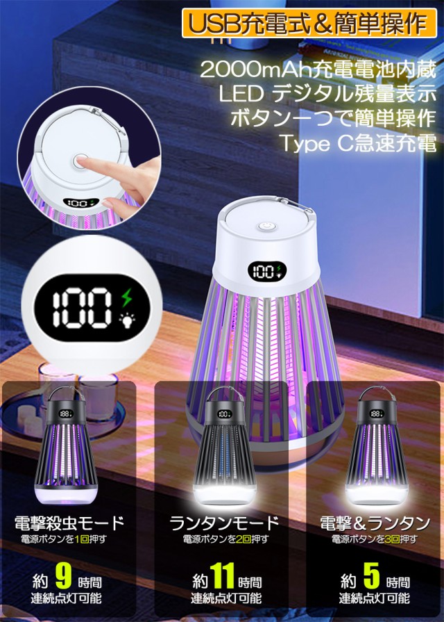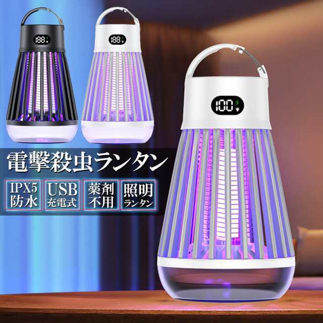 電撃殺虫器 電撃殺虫機 電気蚊取り器 捕虫器 UV光源誘引式 照明 ランタン LEDライト 吊り下げ 据え置き USB充電 防水 殺虫ライト 殺虫灯 虫除け 蚊取り器 コバエ取り 薬剤不用 無毒無害 省エネ アウトドア 屋外室内用