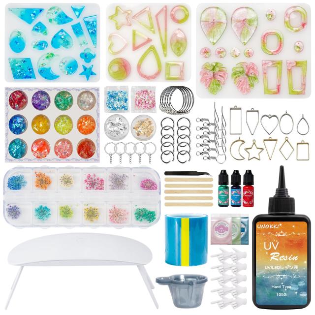 UNOKKI レジン セット初心者, UVレジン スターターキット セット 初心者,レジン 着色剤,レジン液,レジン型, uvライト レジン用, 必要な道