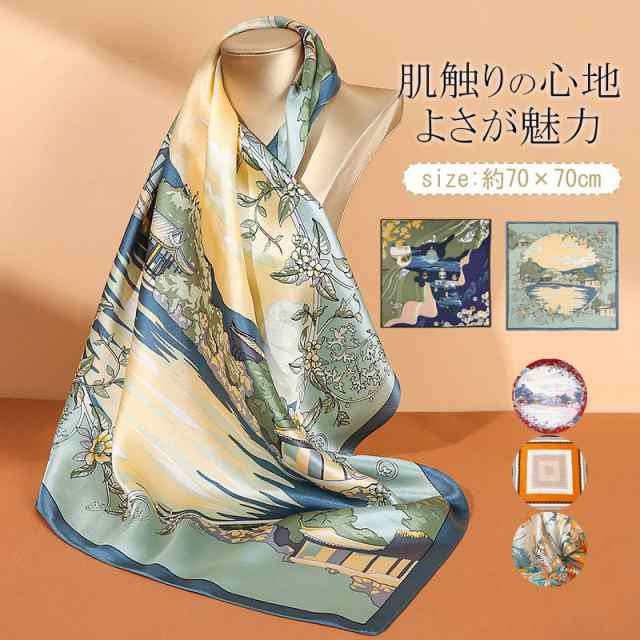 シルク100% スカーフ 大判 UVカット 70*70cm 正方形 小さめ ママの日 バンダナサイズ ホワイトデー プチギフト 春